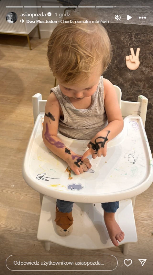 Joasia Opozda dba o prywatność Vincenta, ale jednocześnie pragnie dzielić się z innymi dumą rozpierającą ją z faktu „bycia mamą”. 35-latka znalazła więc sprytne połączenie – do tej pory wprawdzie publikowała fotografie lub nagrania ukazujące „Viniego”, ale jego buzia zazwyczaj pozostawała zasłonięta. Gwiazda wykorzystywała do tego m.in. rozmaite naklejki, które skutecznie zakrywały twarz malucha. Teraz – na najnowszych relacjach – Opozda odeszła od tej praktyki, „przyłapując” synka na zabawie kredkami. Tym razem chłopczyk pozował przodem do aparatu, mając spuszczoną głowę.