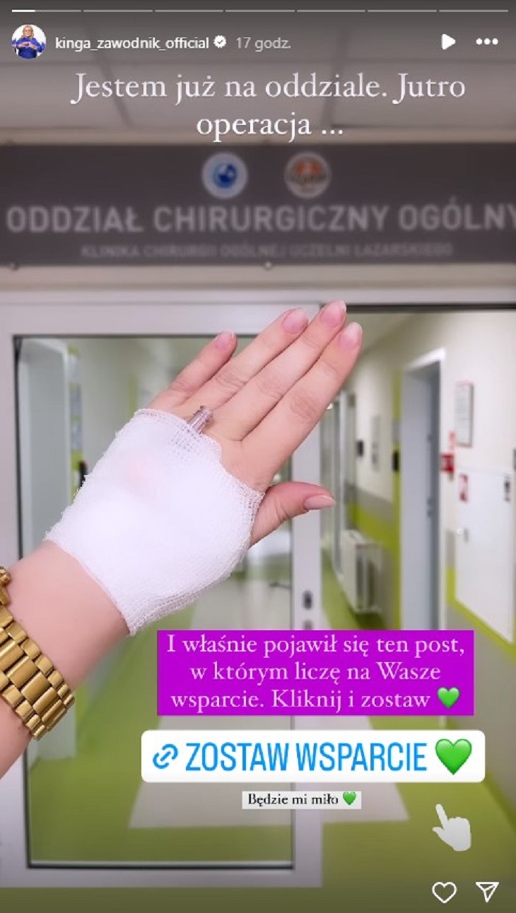 Wczoraj wieczorem Kinga Zawodnik dodała do relacji na Instagramie zdjęcie obrazującej, że znajduje się już na oddziale. Życzymy dużo sił i szybkiego powrotu do zdrowia!