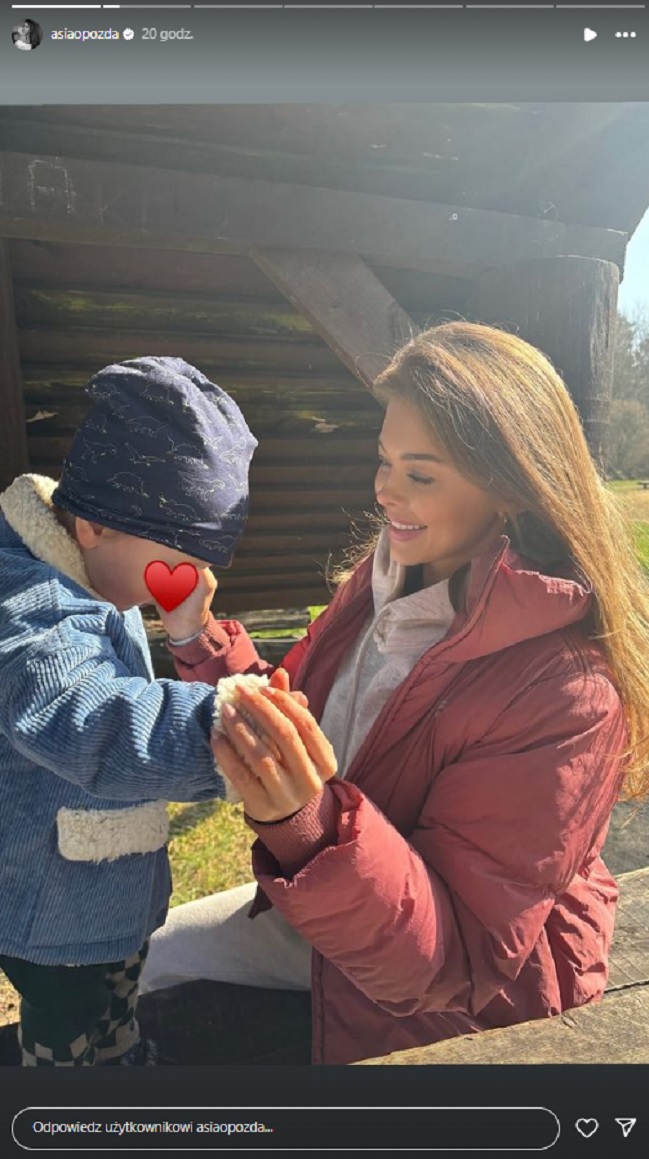 Joanna Opozda opublikowała zdjęcie, na którym widać ją w towarzystwie Vincenta. Buzia chłopca została zasłonięta emotikoną serca. W momencie wykonywania fotografii mama i synek znajdowali się na zewnątrz.