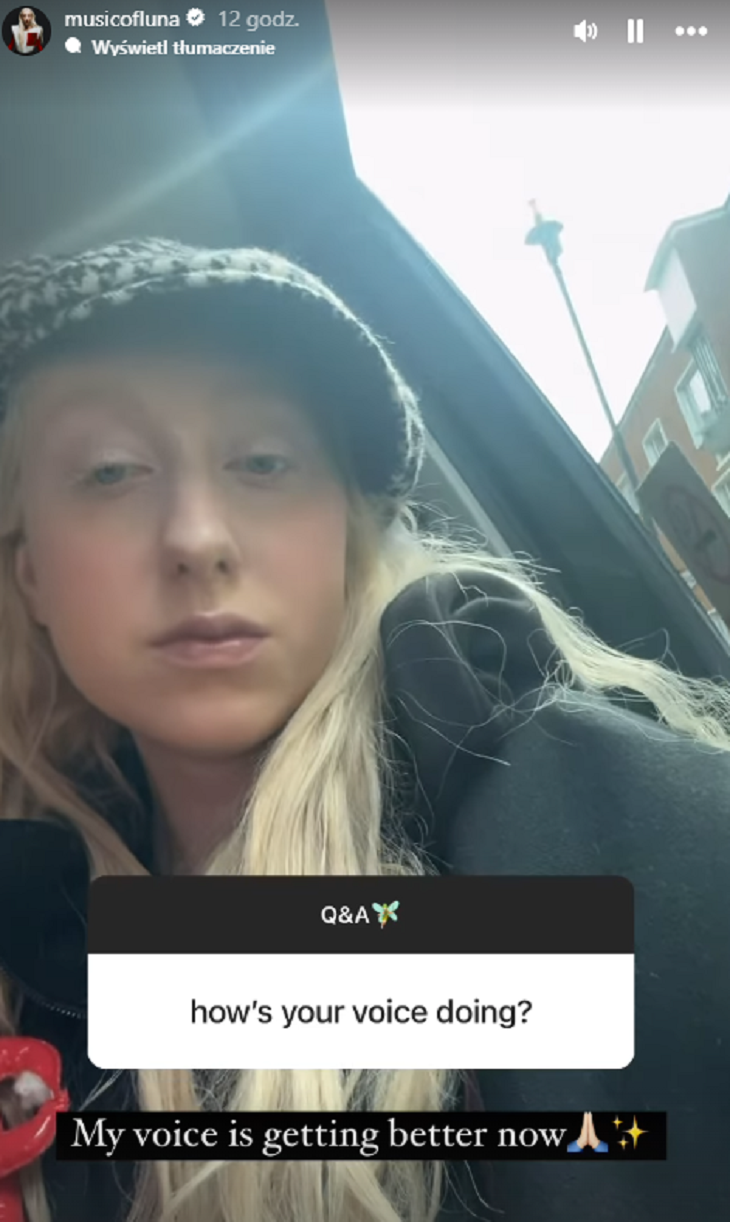 Choroba Luny zaniepokoiła fanów, którzy zaczęli się obawiać o to, czy reprezentantka Polski wyzdrowieje do oficjalnego konkursu i będzie mogła stanąć na scenie w pełni swoich możliwości. Artystka na swoim Instagramie zorganizowała Q&A, gdzie internauci mogli zadawać jej pytania. Pierwsze z nich dotyczyły oczywiście tego, czy stan wokalistki się poprawia. Luna odpowiedziała wprost: