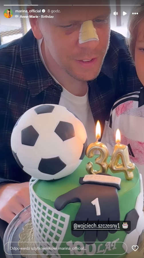 Szczęsny świętował urodziny cały czas mając założony opatrunek na nosie. Przypomnijmy, że kilka dni temu, podczas meczu Juventusu z Torino, Polak został uderzony łokciem przez Adama Masinę, co skutkowało złamaniem kości nosowych. Wojciech jest już po operacji i powoli wraca do zdrowia.