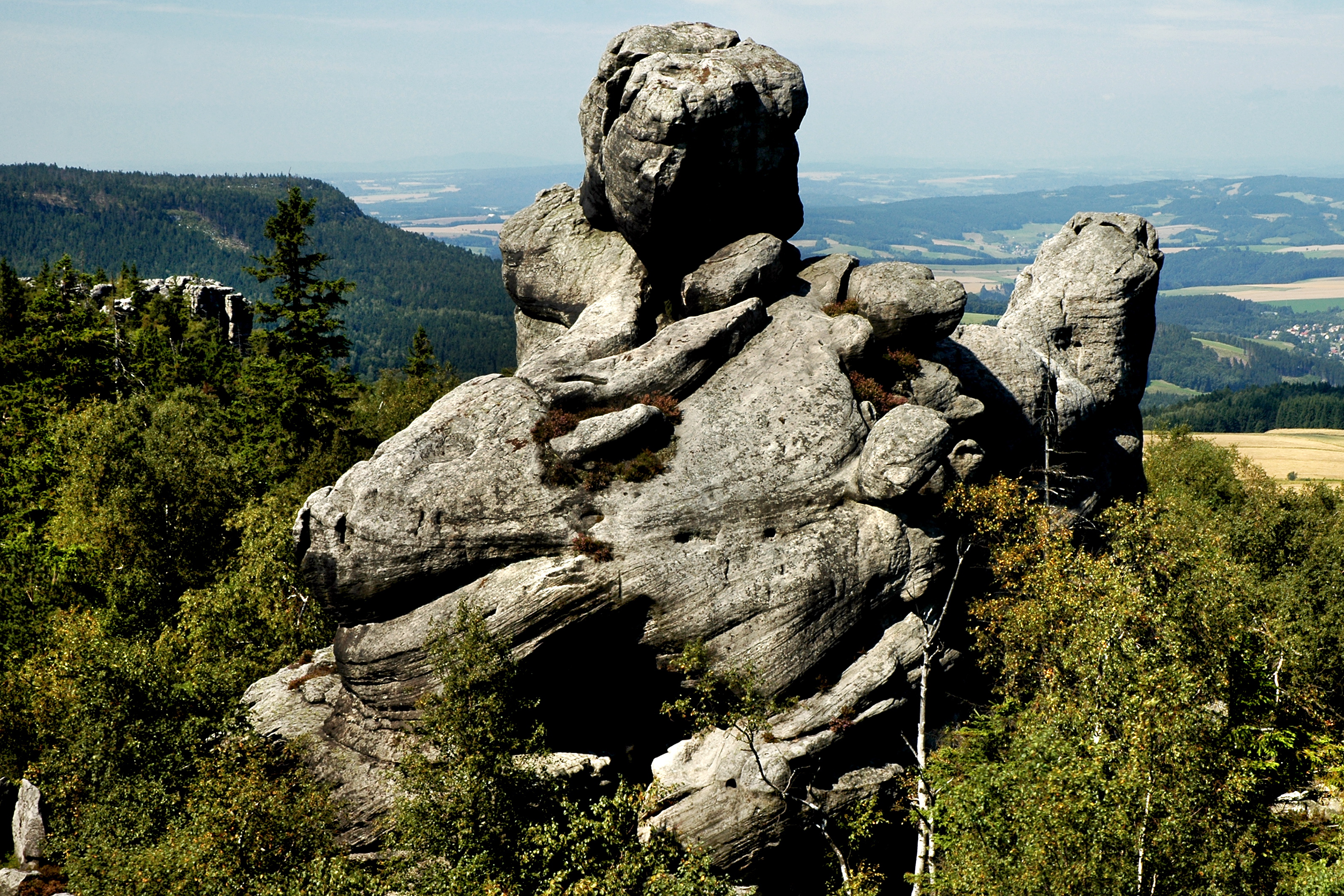 Oprócz bogatej historii, która wiąże się z jego niemiecką (Große Heuscheuer) i czeską (Velká Hejšovina) przeszłością, Szczeliniec Wielki oferuje przepiękne krajobrazy, które można podziwiać z licznych tarasów widokowych. Panoramy rozpościerające się z tych punktów na Sudety zapierają dech w piersiach i są niezapomnianym doświadczeniem dla każdego, kto zdecyduje się odwiedzić ten wyjątkowy zakątek Polski.