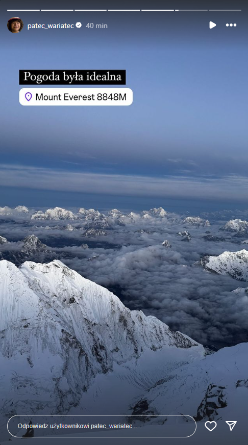21 maja dostaliśmy informację od teamu influencera, że podróżnikowi około 2:00 w nocy (czasu polskiego) udało się wejść na szczyt.