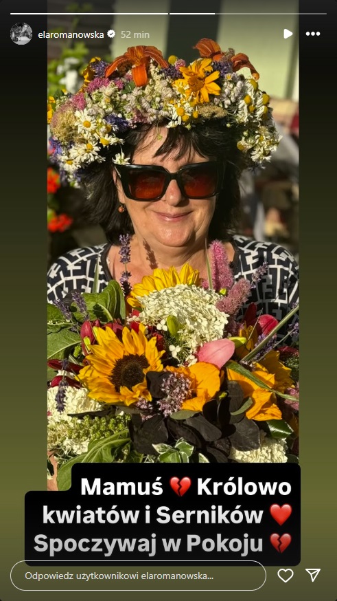 Elżbieta Romanowska w opublikowanym w relacji na Instagramie wpisie przekazała niezwykle smutne wieści. Gwiazda programu „Nasz nowy dom” żegna ukochaną mamę. O jej odejściu Bogusławy Romanowskiej poinformowała, zamieszczając kolorowe zdjęcie i podpis: