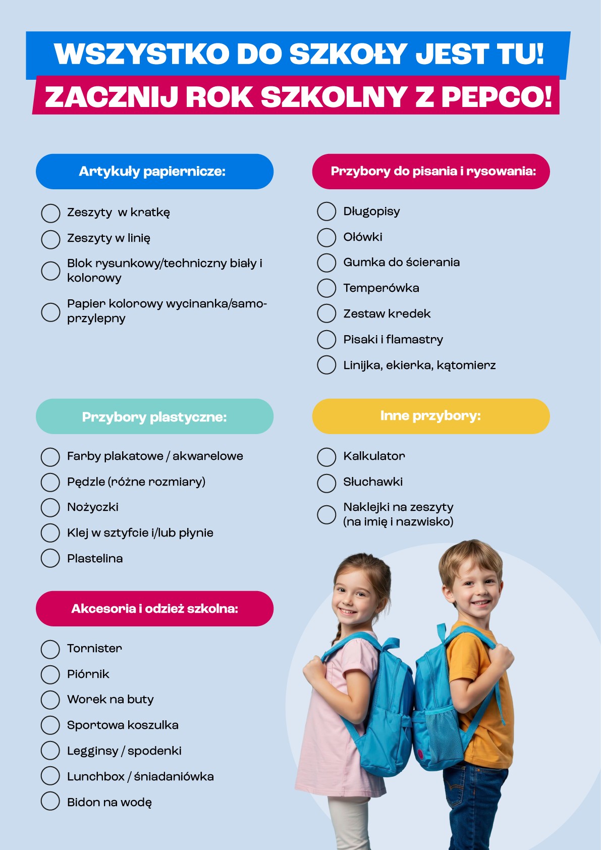 Badanie pokazuje, że mamy oprócz możliwości zrobienia wszystkich zakupów w jednym miejscu, cenią również praktyczne narzędzia, takie jak lista najpotrzebniejszych rzeczy do szkoły. Dlatego Pepco przygotowało specjalną wyprawkową checklistę, która pomaga rodzicom zaplanować zakupy i uniknąć niepotrzebnego stresu.