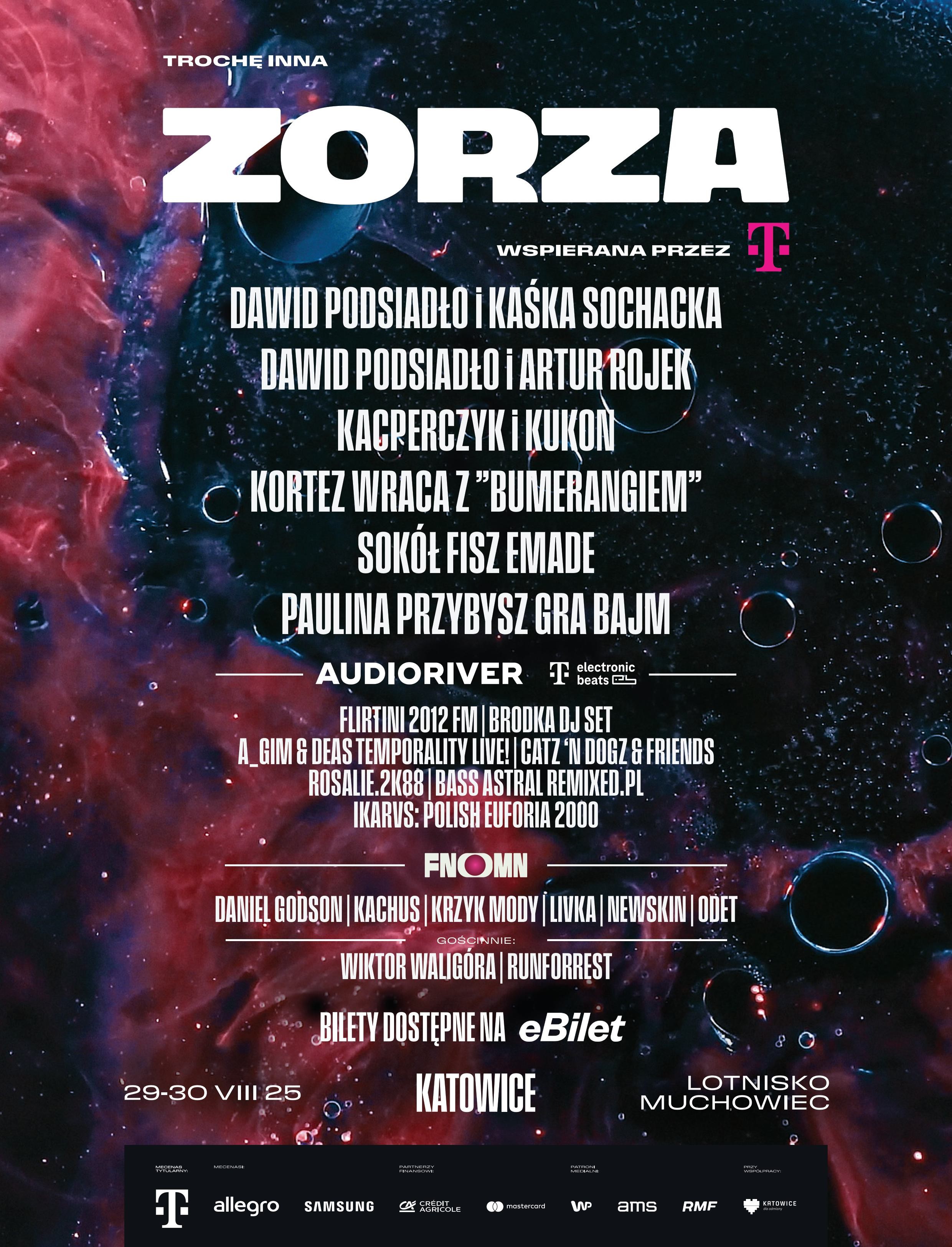 Przed nami ostatni przystanek tegorocznej ZORZY wspieranej przez T-Mobile - wielki finał w Katowicach (29–30 sierpnia). To tam po raz ostatni wybrzmią wszystkie premierowe projekty stworzone specjalnie na tę trasę. Publiczność zobaczy m.in. wyjątkowy koncert Dawida i Artura Rojka, który zostanie zarejestrowany i wydany jako album live, finał FNOMN – platformy wspierającej młodych artystów – a także niepowtarzalne spotkanie Pauliny Przybysz z Beatą Kozidrak. To wydarzenie, które zapisze się w historii polskich festiwali, a bilety są wciąż dostępne na eBilet.pl.