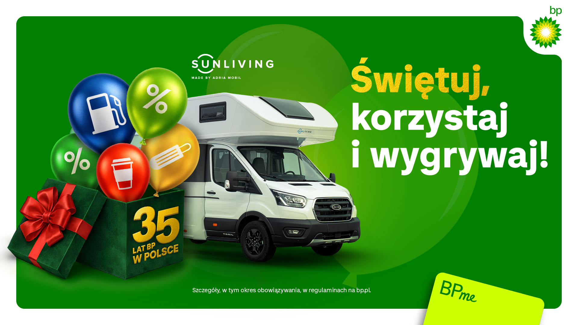 Warto zainteresować się jubileuszowym konkursem, w którym do wygrania jest rodzinny kamper – nagroda idealnie wpisująca się w ideę podróżowania i hasło „35 lat w drodze z bp”.