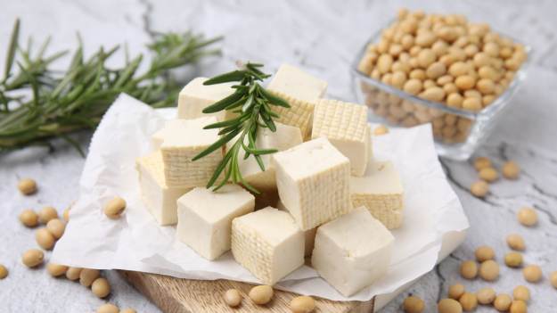 Tofu w sosie miso z groszkiem cukrowym i makaronem gryczanym soba