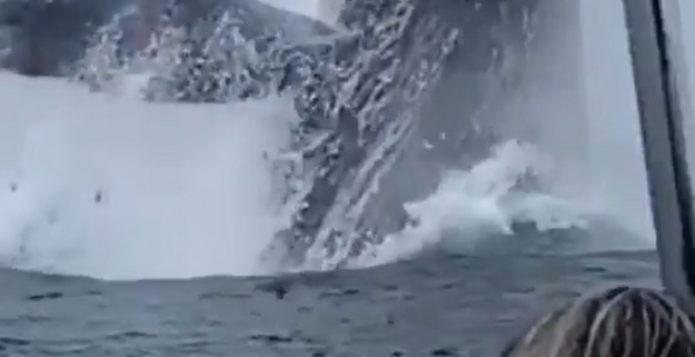 Ogromny wieloryb wyskoczył tuż obok łodzi. Wszystko się nagrało! [WIDEO]