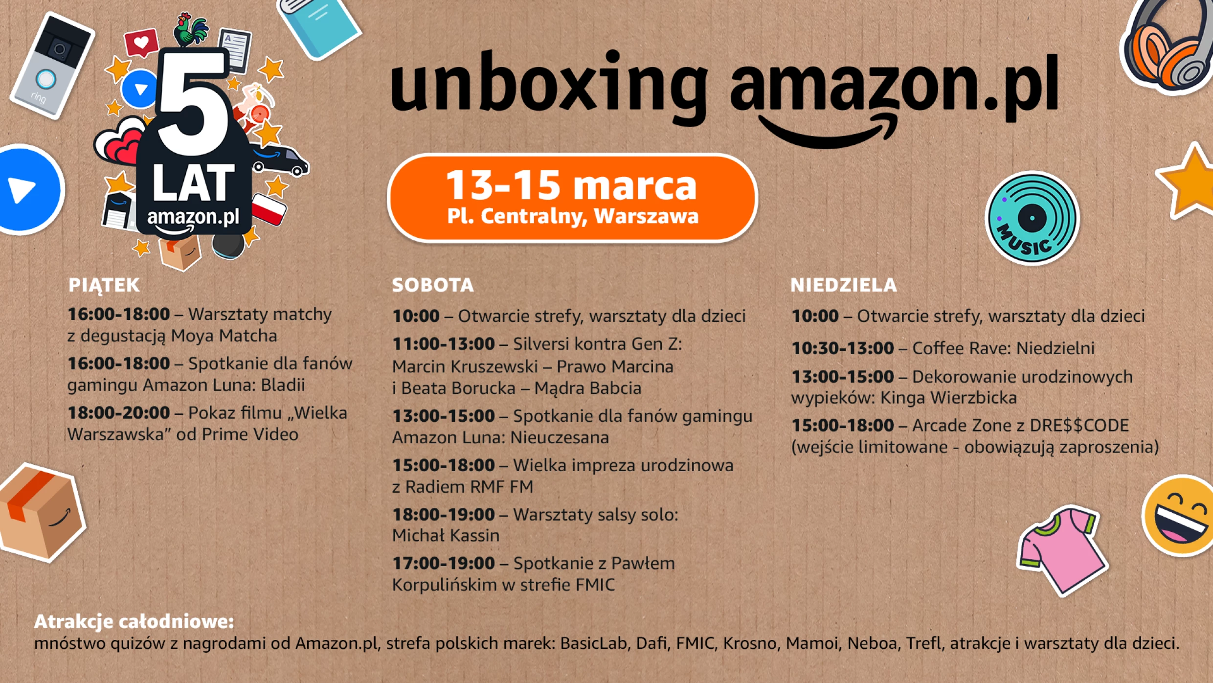 A już 14 marca zapraszamy Was na Wielką Imprezówkę RMF FM w urodzinowej strefie Unboxing Amazon.pl na Placu Centralnym w Warszawie.