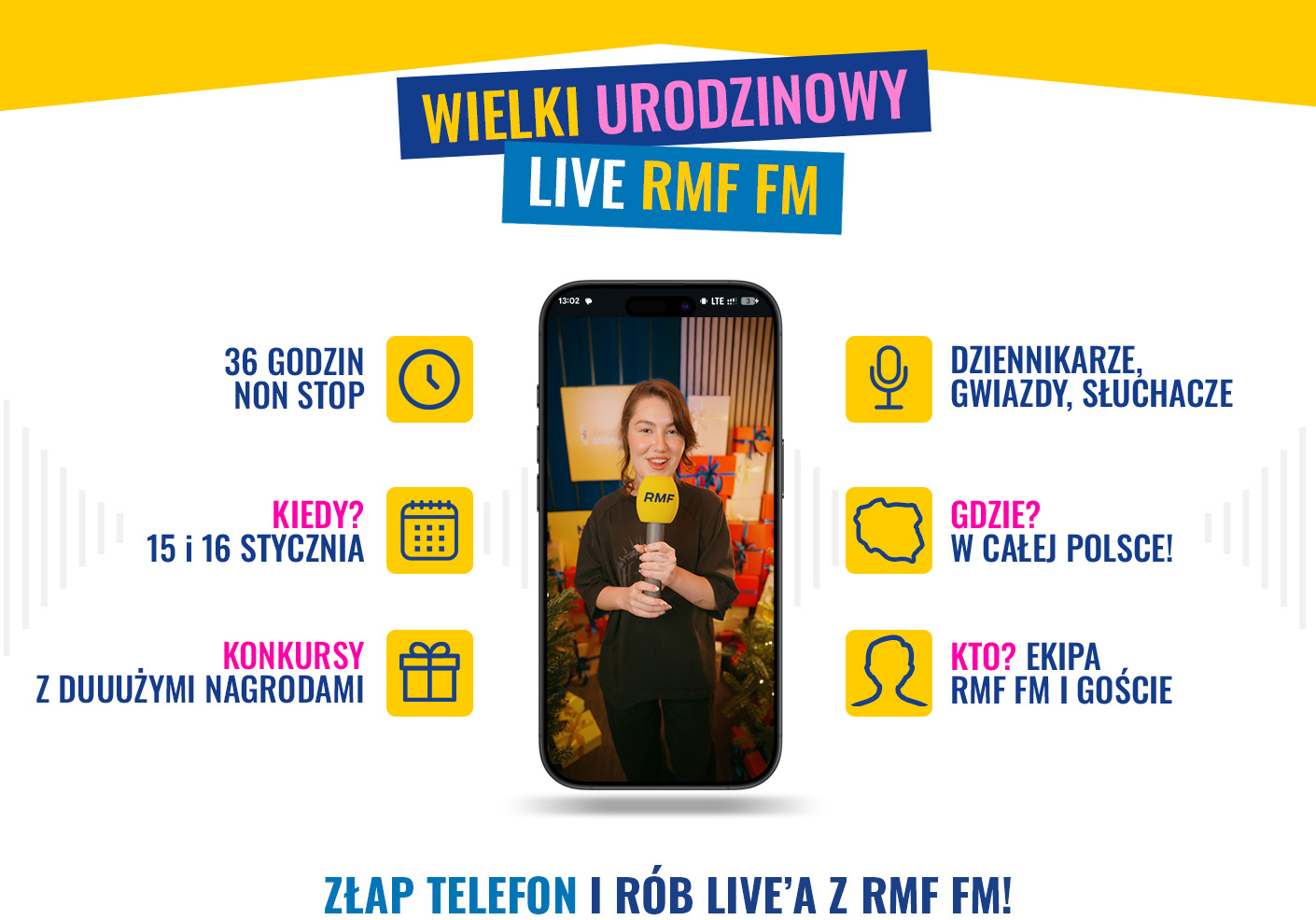 Wyrażam zgodę na otrzymywanie na podany przez siebie adres e-mail lub inny podany adres elektroniczny (nr telefonu komórkowego lub stacjonarnego) informacji handlowych w rozumieniu Ustawy o świadczeniu usług drogą elektroniczną z dnia 18 lipca 2002 roku (Dz. U. z 2002 r. nr 144, poz. 1204 z póź. zm.) od spółki Radio Muzyka Fakty Grupa RMF sp. z o.o. sp. k. działającej w imieniu własnym i na własną rzecz lub też na zlecenie i na rzecz swoich kontrahentów/partnerów biznesowych. Wyrażam także zgodę, aby do wysyłania powyższych informacji handlowych wykorzystywane były telekomunikacyjne urządzenia końcowe lub automatyczne systemy wywołujące w rozumieniu art. 172 Ustawy Prawo telekomunikacyjne.