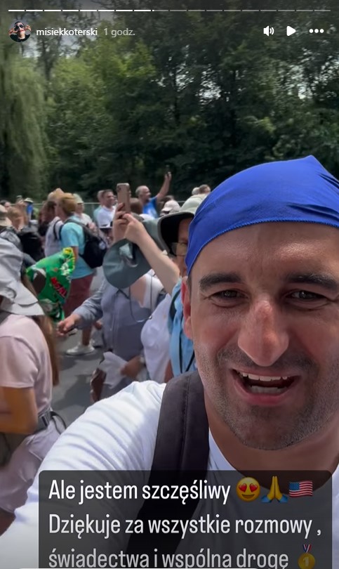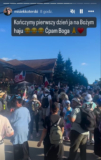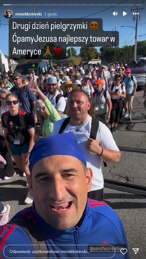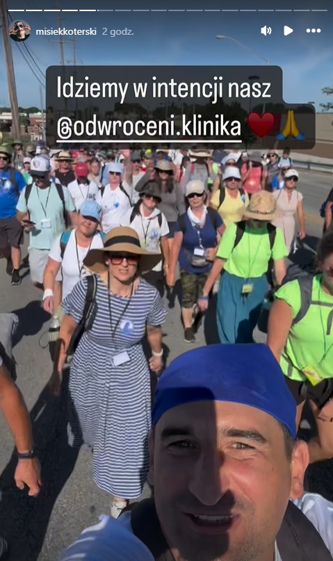 Aktor w mediach społecznościowych relacjonował przebieg pielgrzymki. Para wraz z synem Fryderykiem 10 sierpnia wyruszyła z Chicago do Merrillville. Koterski podkreślał, że szedł w intencji nowej kliniki dla osób uzależnionych otwarcie której zapowiedział. „Nasza pierwsza pielgrzymka w życiu. Idziemy w intencji naszej kliniki, wszystkich uzależnionych, rodziny i pieska” — mówił.