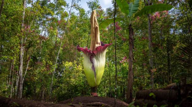 To zdecydowanie jedna z najbardziej niezwykłych roślin świata. Amorphophallus titanum, czyli dziwidło olbrzymie, należy do rodziny obrazkowatych. Jego naturalnym środowiskiem są lasy równikowe w zachodniej części Sumatry. Niestety ten okaz występuje coraz rzadziej, przez co został wypisany na Czerwoną Listę Gatunków Zagrożonych IUCN. Można go spotkać w niektórych ogrodach botanicznych, np. w Sydney. Naukowcy nie bez powodu uznają dziwidło olbrzymie za prawdziwy ewenement. Co w nim takiego niezwykłego?