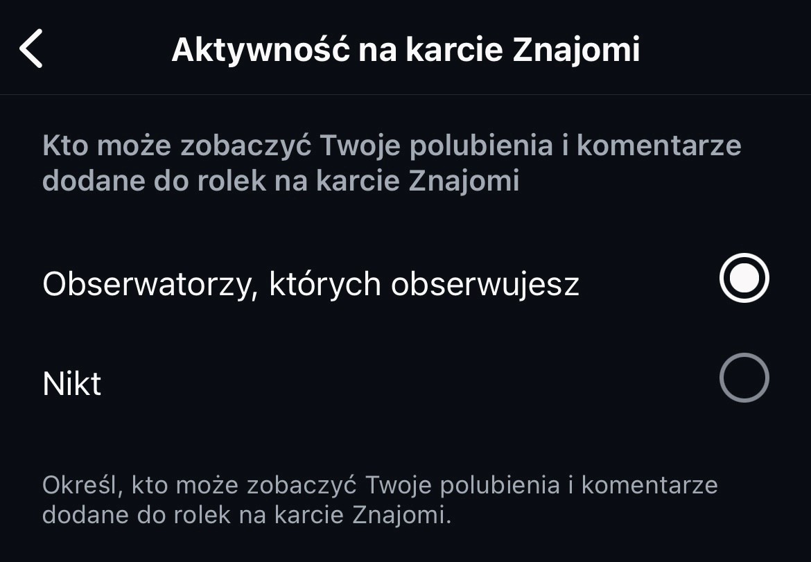 Po wykonaniu tych kroków twoje aktywności w Reels nie będą już wyświetlane w zakładce „Znajomi” twoim obserwującym.