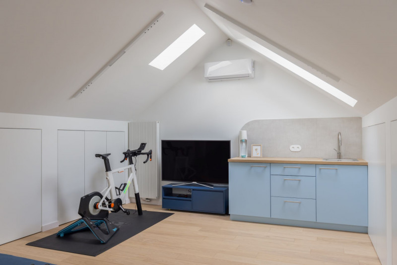 Zanim rozpoczęła się właściwy remont, przeprowadzono szczegółowy audyt nieruchomości. Dzięki niemu można było w pełni wykorzystać potencjał przestrzeni. Dawny garaż przeobrażono w nowoczesną, osobną kuchnię. Umożliwiło to całkowitą reorganizację parteru i sprawiło, że zyskał on bardziej reprezentacyjny charakter.