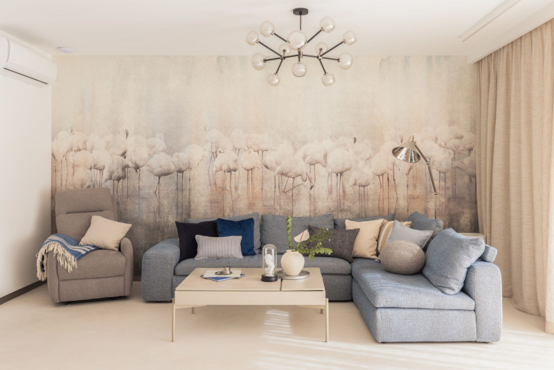Wykończenie wnętrz to opowieść o kontrastach: parter pokrywa mikrocement, natomiast wyższe kondygnacje rozświetla bielony dąb. Całość uzupełniają blaty z konglomeratu kwarcowego, designerskie tapety i detale ze szczotkowanej stali. To właśnie świadome łączenie materiałów – zimnych i ciepłych wizualnie – w efekcie dało elegancki efekt.