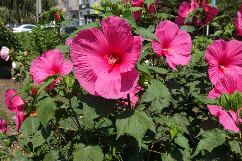 Hibiskus bagienny świetnie prezentuje się jako soliter na środku trawnika, ale równie dobrze wygląda w grupach na rabatach bylinowych czy nad brzegiem oczka wodnego. Niższe odmiany sprawdzą się w donicach na balkonie lub tarasie. U podstawy warto posadzić niższe rośliny, które zamaskują ogołacające się dolne części pędów.